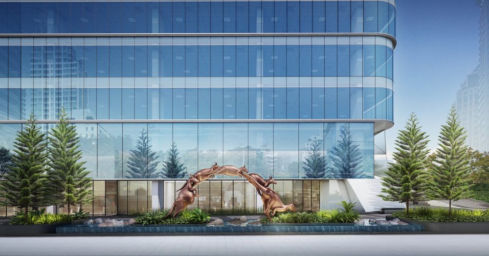 ภายในอาคารมีโถง Vertical Sky-light Atrium สูง 60 เมตร เพื่อเสริมสร้างบรรยากาศที่โล่ง โปร่ง รื่นรมย์ ที่ไม่พบในอาคารอื่นๆ จุดเด่นอีกด้านหนึ่งของโครงการ คือ ประติมากรรม ซึ่งนอกจากทำให้โครงการมีเอกลักษณ์แตกต่างแล้ว ยังสื่อความหมายในทางที่ดี เช่น หมู่จิงโจ้กระโดดที่อยู่หน้าโครงการ สื่อถึงความก้าวหน้าเจริญรุ่งเรือง และความสามัคคีกลมเกลียว หมู่หมีโคล่าเรืองแสงสีขาว บริเวณ Drop off สื่อถึงความสมบูรณ์พูนสุข เป็นต้น