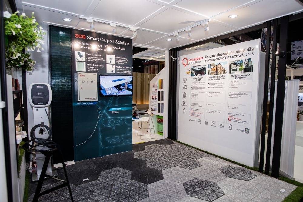 2. SCG Solar roof & SCG Smart Carport Solution: โซนที่นำเสนอนวัตกรรมหลังคาโซลาร์ อาทิ SCG Solar Roof Solutions บริการตั้งแต่การตรวจเช็คสุขภาพหลังคา ออกแบบและติดตั้งด้วยทีมช่างมืออาชีพ พร้อมบริการหลังการขาย ดีไซน์เพื่อให้เหมาะกับโครงสร้างและสถาปัตยกรรม รวมถึงประสิทธิภาพการผลิตไฟฟ้าสูงสุด ช่วยให้เจ้าของบ้านประหยัดไฟฟ้าได้มากถึง 40%