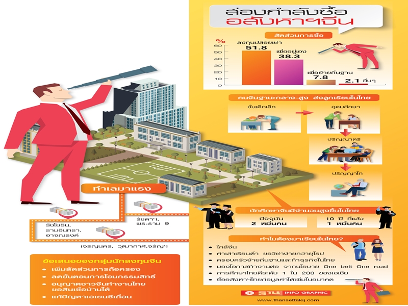 กับอีกกลุ่ม คือ ซื้อเพื่อลงทุนปล่อยเช่ารองรับความต้องการของกลุ่ม Education Buyers และอื่นๆ โดยเฉพาะ อย่างไรก็ตาม ที่ผ่านมา นักลงทุนจีนมีข้อจำกัดในการซื้ออสังหาฯในไทยอยู่มาก โดยเฉพาะความเข้มงวดจากนโยบายถือครอง ที่กำหนดไว้เพียงไม่เกิน 49% และการเรียกใบรับรองการโอนเงินจากต่างประเทศ ซึ่งสร้างความยุ่งยากให้กับผู้ซื้อ