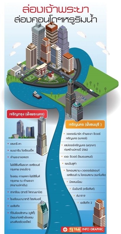 “ฐานเศรษฐกิจ” สำรวจ ความคึกคักของทำเล 2 ฟากฝั่งริมนํ้าเจ้าพระยา พบว่า มีคอนโดมิเนียมอยู่ระหว่างก่อสร้าง รวมถึงโรงแรมริมนํ้าสาดแสงไฟระยับกลางลำนํ้า สร้างความสวยงามให้ทั้ง 2 ทำเล