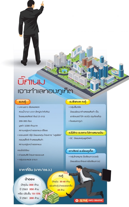 ทั้งนี้ยอมรับว่า ราคาที่ดินขยับขึ้นเท่าตัวโดยเฉพาะป่าตอง เช่นเดียวกับนายกเทศมนตรีเมืองป่าตอง นางสาวเฉลิมลักษณ์ เก็บทรัพย์ ออกมาระบุว่า ต้องเร่งดำเนินโครงการเนื่องจากปัจจุบันราคาที่ดินป่าตอง ขยับไปที่ 300 ล้านบาทต่อไร่ จากปีที่ผ่านมา 200 ล้านบาทต่อไร่