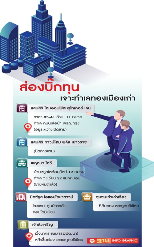 ขณะ ถนนเสือป่า พบว่า บริษัทแสนสิริ จำกัด (มหาชน) พัฒนาโฮมออฟฟิศหรูขายกลางเมืองเก่า ซึ่งเป็นเสน่ห์อีกแบบท่ามกลางย่านอนุรักษ์ นายประเสริฐ แต่ดุลยสาธิต ประธานเจ้าหน้าที่บริหาร กลุ่มธุรกิจพฤกษา เรียลเอสเตท-พรีเมียม บริษัท พฤกษาเรียลเอสเตท จำกัด (มหาชน) ระบุว่า เยาวราชเป็นชุมชนเก่าอนุรักษ์ ให้ โอลด์ทาวน์ เหมือนต่างประเทศ อย่างอังกฤษ ฝรั่งเศส สิงคโปร์ เวียดนาม สร้างมูลค่าให้กับพื้นที่