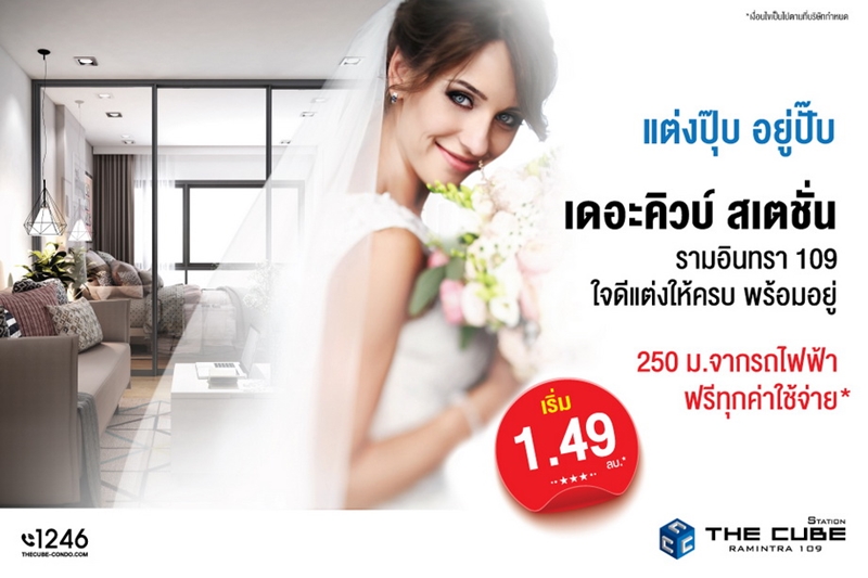 จัดแคมเปญพิเศษกลางปี ‘แต่งปุ๊บ อยู่ปั๊บกับเดอะคิวบ์ สเตชั่น รามอินทรา 109’ คอนโดมิเนียมตกแต่งครบทุกฟังก์ชั่นพร้อมเข้าอยู่อาศัย มีขนาดตั้งแต่ 24 - 34 ตารางเมตร ราคาเริ่มต้น 1.49 ล้านบาท พร้อมเฟอร์นิเจอร์ (Fully Furnished) คุณภาพสูงจาก Modernform ที่ออกแบบเฉพาะโครงการแบบครบเซต