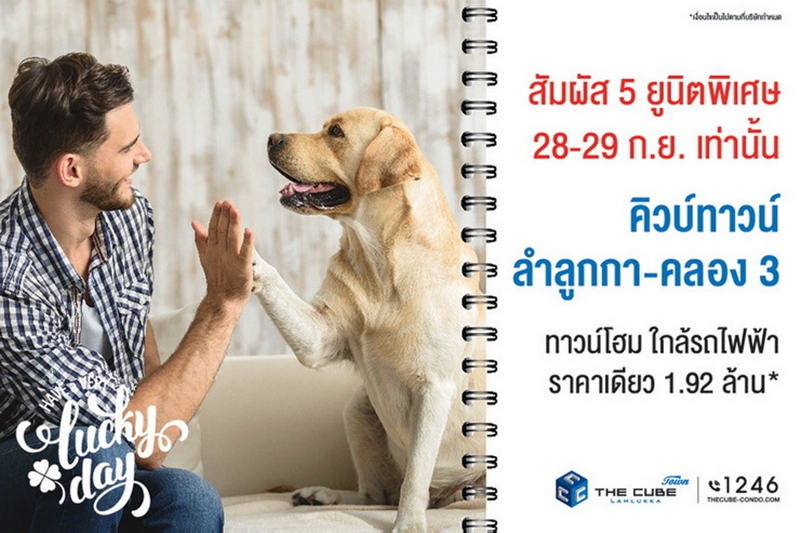 ซอยเปียร์นนท์ ลำลูกกา คลอง 3 ใกล้รถไฟฟ้าสายสีเขียว สถานีคูคต (เปิดใช้ระบบปี 2563) จัดงาน ‘Have a Very Lucky Day : ขอให้ทุกวันเป็นวันที่โชคดีที่สุด’ ระหว่างวันที่ 28-29 กันยายน 2562 ณ บริเวณหน้าสำนักงานขายโครงการเดอะคิวบ์ ทาวน์ ลำลูกกา