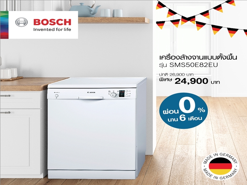 บริษัท บีเอสเอช โฮม แอ็พพลายแอ็นซ์ จำกัด (ประเทศไทย) ผู้จัดจำหน่ายเครื่องใช้ไฟฟ้า “บ๊อช” (Bosch) แบรนด์อันดับ 1 ของยุโรป ที่ผลิตในประเทศเยอรมันนี (Made in Germany) ร่วมฉลองเทศกาล Oktoberfest เทศกาลประจำปีของประเทศเยอรมนี ด้วยการมอบราคาพิเศษ พร้อมกับโปรแกรมผ่อน 0% นานสูงสุดถึง 10 เดือน เพียงซื้อเครื่องใช้ไฟฟ้า “บ๊อช” (Bosch)