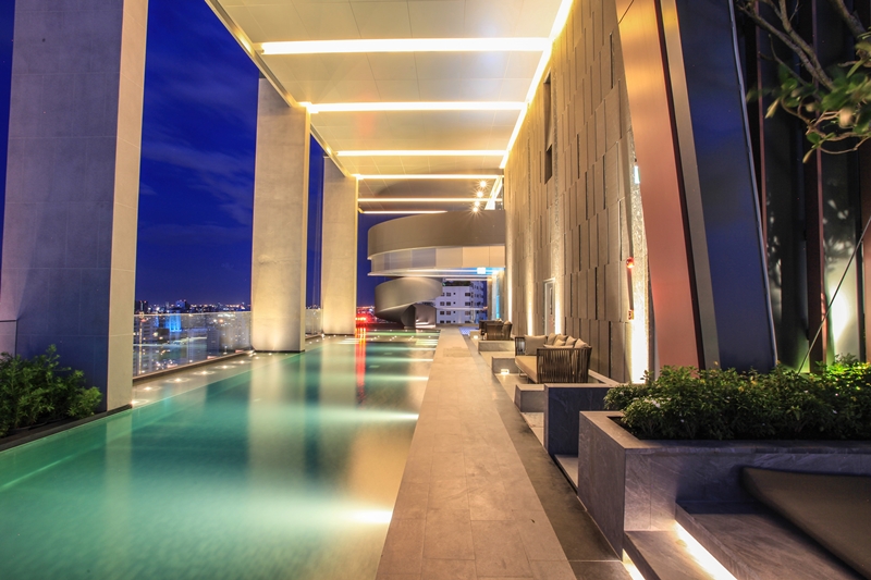 ส่วนบนชั้น 29 ได้แรงบันดาลใจจากงานแฟชั่นโชว์ของ FENDI ในรูปแบบบันไดวนเหนือสระว่ายน้ำ