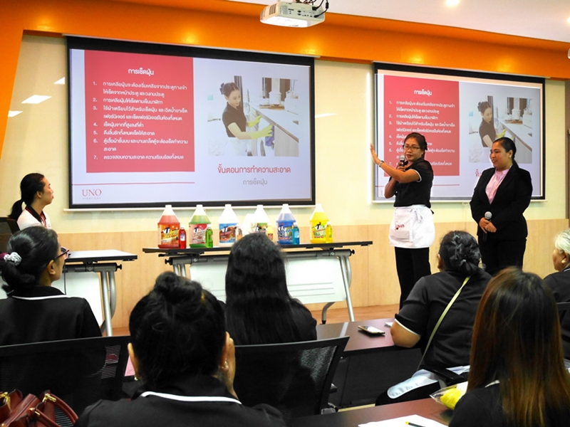 นอกจากนี้ยังมีทีมงานผู้ชำนาญการที่คอยแนะนำเทคนิคต่างๆ นำโดย ศศิธร พานนนท์ กรรมการผู้จัดการ บริษัท อูโน่ เซอร์วิส จำกัด ผู้มีประสบการณ์การในการทำงานด้านบริการทำความสะอาดมากกว่า 10 ปี ที่มาเผยเทคนิคพิเศษ เรียนรู้เร็ว เข้าใจง่ายภายในวันเดียว อาทิ การใช้อุปกรณ์ทำความสะอาด, การใช้น้ำยาที่เหมาะสมกับประเภทงาน, ความปลอดภัยในระหว่างปฏิบัติงาน และมาตรฐานการให้บริการแก่ลูกค้า