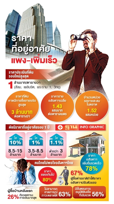 ทำให้ภาพรวมตลาดชะลอตัว ท่ามกลางจำนวนที่อยู่อาศัยที่รอขายสะสมในตลาดสูงถึง 1.52 แสนหน่วย เพราะปริมาณคนซื้อลดน้อยลง ความสามารถในการซื้อของคนหดหาย ซึ่งสอดคล้องกับผลวัดความพึงพอใจต่อตลาดอสังหาฯ ของคนไทย ที่ลดลงเหลือเพียง 61% เท่านั้น เนื่องจากส่วนใหญ่มองว่า อสังหาฯไทย มีราคาแพงเกินไป และไม่กล้าตัดสินใจซื้อในภาวะที่เศรษฐกิจยังไม่ฟื้นตัวดี อีกทั้งยังระบุว่านโยบายของรัฐไม่เอื้อต่อการซื้ออสังหาฯ ซึ่งเป็นสัดส่วนที่เพิ่มขึ้นจากการสำรวจก่อนหน้ามากกว่า 10%