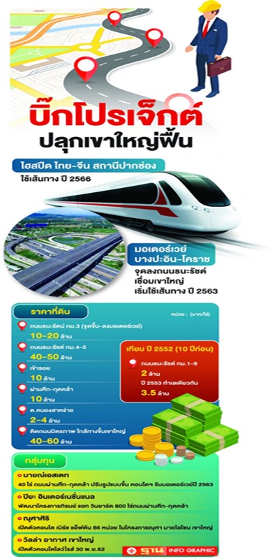 เขาใหญ่ กลับมามีชีวิตชีวาอีกครั้งเมื่อโครงการขนาดใหญ่ของรัฐมีความคืบหน้า อย่าง ทางหลวงพิเศษระหว่างเมือง (มอเตอร์เวย์) สายบางปะอิน-โคราช ที่จะเปิดทดลองใช้เส้นทางบางส่วน โดยเฉพาะบริเวณปากช่อง อีกทั้งยังมีจุดเด่นที่แตกต่างไปจาก มอเตอร์เวย์สายอื่นนั่นคือถนนระดับดินยาว 9 กิโลเมตร โดยไม่มีรั้วกั้น ซึ่งอยู่บริเวณจุดขึ้นลง