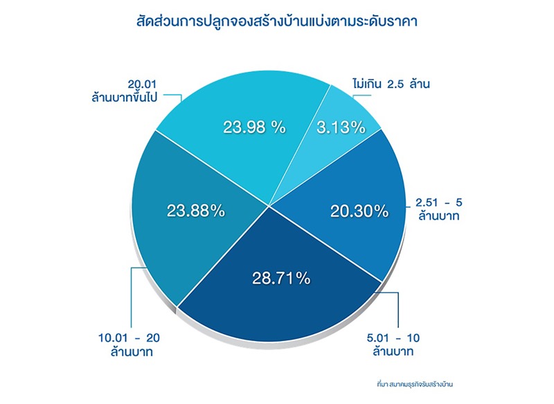 ภาพรวมปีนี้สมาคมฯ ถือว่าพอใจกับการขยายตัว โดยเหตุผลสำคัญที่ทำให้ตลาดในปีนี้ยังมีอัตราการเติบโตเพิ่มขึ้น น่าจะมาจากเหตุผล 2 ประการคือ ประการแรกบ้านระดับกลางบนในปีนี้มีอัตราการขยายตัวเพิ่มขึ้น จาก การสำรวจยอดขายภายในงาน รับสร้างบ้านและวัสดุ 2019 พบว่า บ้านระดับราคา 5.01 – 10 ล้านบาท ยังคงมีสัดส่วนสูงสุดคือ 28.71% รองลงมาคือบ้านระดับราคา 20.01 ล้านบาทขึ้นไป 23.98% และบ้านระดับราคา 10.01 – 20 ล้านบาท ที่ 23.88% ประการที่สอง กำลังซื้อในพื้นที่ต่างจังหวัดขยายตัวเพิ่มขึ้น