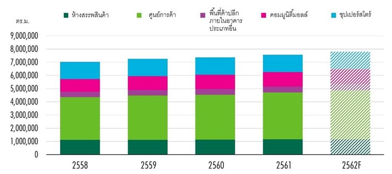 จากการสำรวจพื้นที่ค้าปลีกโดยแผนกวิจัย ซีบีอาร์อี พบว่า ณ ไตรมาส 3 ปี 2562 มีพื้นที่การค้าปลีกในกรุงเทพฯ รวมทั้งสิ้น 7.8 ล้านตารางเมตร เพิ่มขึ้น 4.39% ต่อปี โดยโครงการโดดเด่นที่สร้างเสร็จในปีนี้ ได้แก่ เดอะ มาร์เก็ต แบงคอก ดองกิ มอลล์ สามย่าน มิตรทาวน์ และเซ็นทรัล วิลเลจ เอาท์เล็ตมอลล์แห่งแรกของกรุงเทพฯ