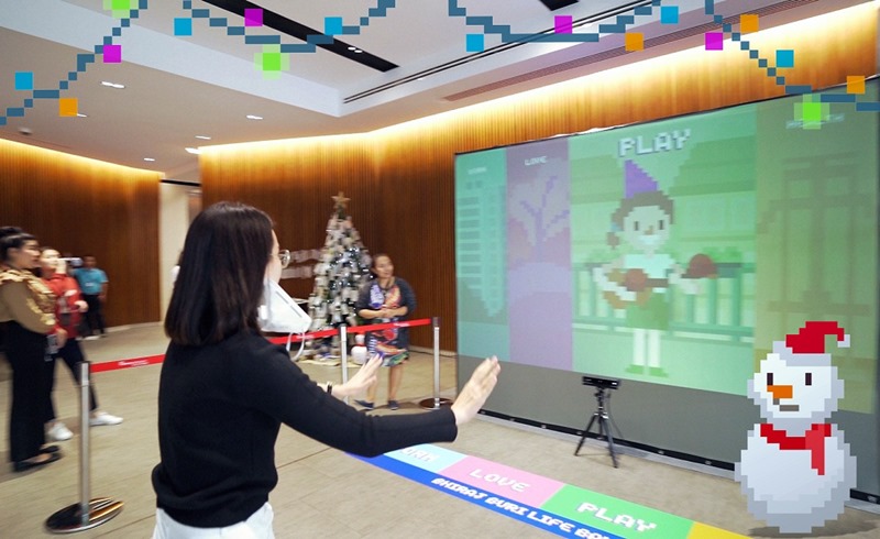 โดยเครื่องเล่นอินเตอร์แอคทีฟประกอบด้วย 4 ช่อง แบ่งตามหลักการ Work-Life Balance ได้แก่ Love, Play, Work และ Health ให้ผู้เล่นได้สนุกกับการทำท่าทางประกอบร่วมกับตัวการ์ตูนพิกเซลสุดน่ารัก พร้อมลุ้นผลคะแนนว่าคุณแบ่งเวลาในแต่ละกิจกรรมได้อย่างดีเยี่ยมหรือไม่