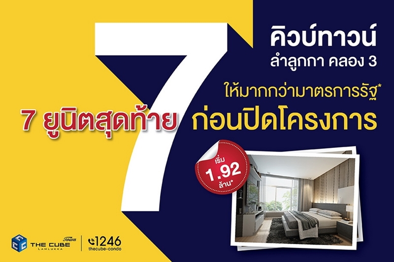 สอบถามเพิ่มเติมโทร. 1246 กดเลือกเดอะคิวบ์ ทาวน์ ลำลูกกา เว็บไซต์ www.thecube-condo.com และติดตามความเคลื่อนไหวต่าง ๆ ได้ทาง www.facebook.com/TheCubeCondominium ไลน์บริษัท : @TheCubeCondo