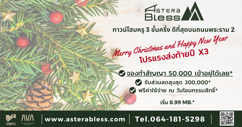 VMPC จัดหนัก “โปรแรงส่งท้ายปี X3” คูณ 3 สิทธิประโยชน์! ทั้งส่วนลดเงินสด สิทธิพิเศษ และของแถมจุใจ กับ 2 โครงการที่อยู่อาศัยคุณภาพระดับไฮเอนด์บนสุดยอดทำเลทองติดถนนใหญ่พระราม 2 “แอสเทรา ไพรด์” บ้านเดี่ยว 3 ชั้นสุดหรู มอบส่วนลดสูงสุด 1,500,000 บาท–ฟรี! แอร์ทั้งหลัง–ฟรี! ชุดครัวสุดหรู และ “แอสเทรา เบลส” พรีเมี่ยมทาวน์โฮม 3 ชั้นครึ่งสไตล์โมเดิร์น กับข้อเสนอสุดพิเศษ! บ้านพร้อมอยู่ เพียงจองและทำสัญญา 50,000 บาท พร้อมรับส่วนลดสูงสุด 200,000 บาท–ฟรี! ค่าใช้จ่ายวันโอนกรรมสิทธิ์ ตั้งแต่วันนี้–31 มกราคม 2563