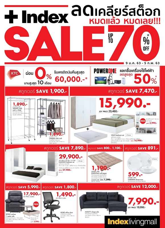อินเด็กซ์ ลิฟวิ่งมอลล์ (Index Living Mall) จัดโปรโมชั่น “อินเด็กซ์ เซลล์” (Index Sale) มหกรรมลดครั้งใหญ่ที่ไม่ควรพลาด ลดเคลียร์สต็อก!! หมดแล้ว หมดเลย!!! พบกับทัพเฟอร์นิเจอร์ ของใช้ภายในบ้าน และของตกแต่งบ้าน