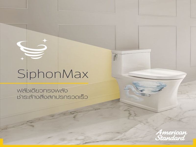 SiphonMax ฟลัชทรงพลัง ผลักสิ่งสกปรกในพริบตา เทคโนโลยี “SiphonMax” พัฒนาต่อยอดมาจากระบบ Siphon แบบทั่วไป ชำระล้างสิ่งสกปรกได้อย่างรวดเร็วด้วยระบบสูญญากาศ มอบความสบายใจให้กับคุณด้วยพลังฟลัชที่ผลักและดูดสิ่งสกปรกออกได้อย่างเต็มประสิทธิภาพ จึงลดการใช้น้ำเกินความจำเป็นซึ่งถือเป็นเทคโนโลยีตัวใหม่ที่ถูกคิดค้นขึ้นเพื่อตอบสนองความต้องการของชีวิตคนในปัจจุบันนี้ได้เป็นอย่างดี