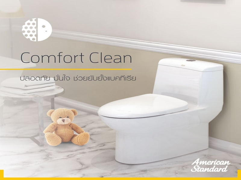 แต่เรานำสารเคลือบผิวชนิดพิเศษที่เรียกว่า “Comfort Clean™” สารเคลือบตัวนี้จะป้องกันและยับยั้งเชื้อแบคทีเรียต่างๆ แม้แต่ตัวอีโคไล พร้อมทั้งช่วยทำลายสิ่งสกปรกและกลิ่นไม่พึงประสงค์ที่ติดอยู่กับผิวสุขภัณฑ์ได้อย่างมีประสิทธิภาพ