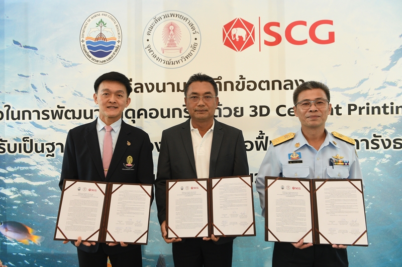 “เอสซีจี” โดยบริษัท เอสซีจี ซิเมนต์ จำกัด ร่วมกับ กรมทรัพยากรทางทะเลและชายฝั่ง กระทรวงทรัพยากรธรรมชาติและสิ่งแวดล้อม และคณะสัตวแพทยศาสตร์ จุฬาลงกรณ์มหาวิทยาลัย ร่วมลงนามบันทึกข้อตกลงความร่วมมือในการพัฒนาวัสดุ Advanced Materials ด้วยเทคโนโลยีการพิมพ์แบบ 3 มิติ (3D Printing Technology) สำหรับเป็นฐานลงเกาะของตัวอ่อนปะการังและการปลูกปะการังธรรมชาติ
