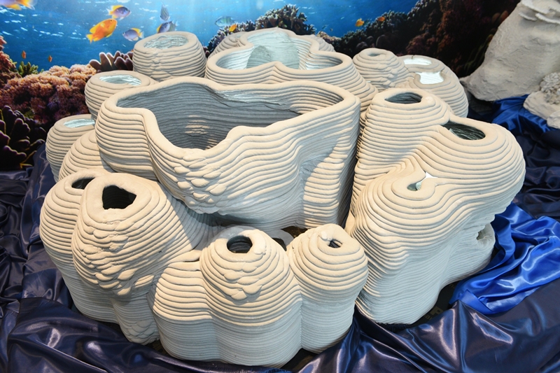 ร้างต้นแบบปะการังเทียมรุ่นใหม่ที่มีความเสมือนจริง และใกล้เคียงธรรมชาติมากยิ่งขึ้น ด้วยเทคโนโลยีขึ้นรูปจาก Advanced Materials ที่เอสซีจี ซิเมนต์ พัฒนาขึ้น สามารถใช้เศษคอนกรีตรีไซเคิลเป็นส่วนผสมทดแทนหินปูนถึง 40% โดยความร่วมมือครั้งนี้ครอบคลุมการศึกษา วิจัย และพัฒนาออกแบบรูปแบบวัสดุให้มีความเหมาะสม ตามแนวทางการฟื้นฟูระบบนิเวศแนวปะการังและทรัพยากรทางทะเลและชายฝั่ง