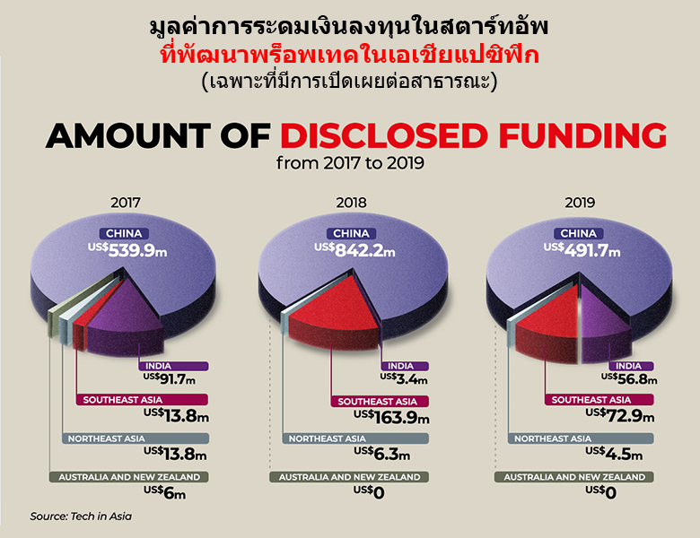 อินโฟร์กราฟฟิกโดย Tech in Asia แสดงให้เห็นว่า สตาร์ทอัพระดับซีรีย์ A มีการระดมทุนมูลค่าเพิ่มขึ้นมากที่สุด จาก 12 ล้านดอลลาร์ในปี 2561 เป็น 26.1 ล้านดอลลาร์ในปี 2562 ซึ่งเพิ่มขึ้น 117.5% เมื่อเทียบเป็นรายปี ส่วนการระดมทุนโดยรวมสำหรับเอเชียตะวันออกเฉียงใต้ มีมูลค่าเพิ่มขึ้นจาก 13.8 ล้านดอลลาร์ในปี 2560 เป็น 72.9 ล้านดอลลาร์ในปี 2562