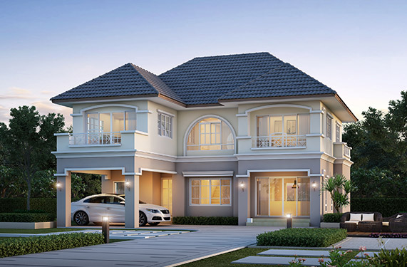 บ้านยอดนิยม คุ้นหู คุ้นตา คนไทยในสไตล์ “โมเดิร์นร่วมสมัย” 2 ชั้น มี 4 ห้องนอน 4 ห้องน้ำ เหมาะกับครอบครัวขนาดใหญ่ มีการออกแบบเรียบง่าย สวยงาม กว้างขวาง อยู่แล้วสบาย ภายในบ้านแยกเป็นสัดส่วน แบ่งฟังก์ชันการใช้งานอย่างลงตัว มีครัวและส่วนจัดเตรียมอาหาร ห้องรับแขกขนาดใหญ่ และห้องนอนที่ขนาดเหมาะสม