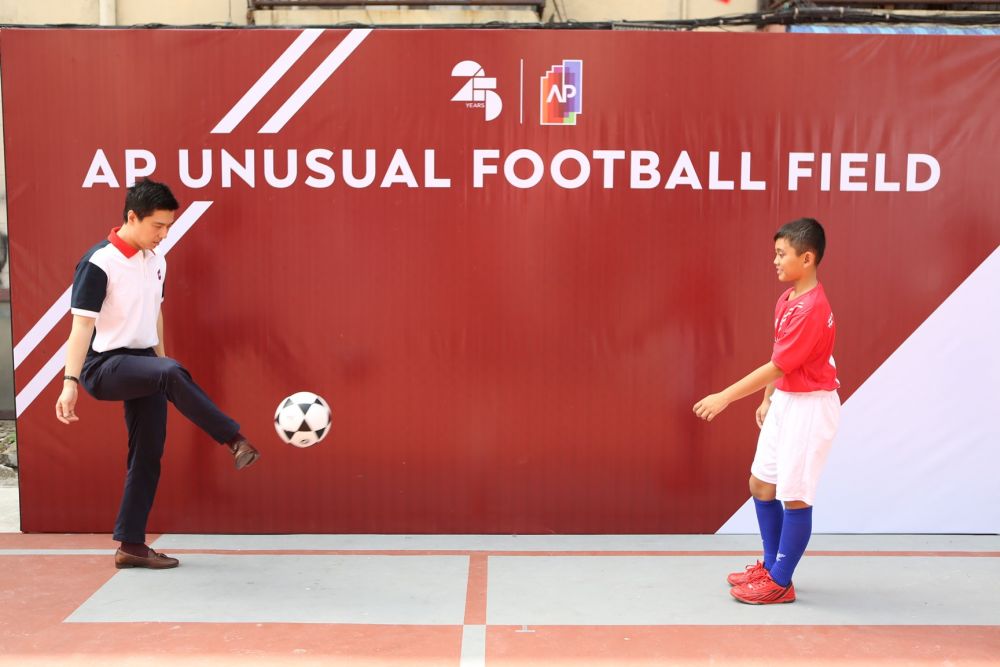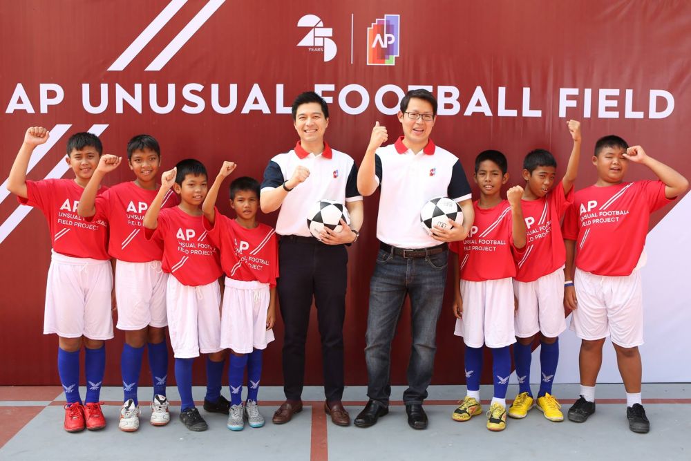 เอพียังได้จัดกิจกรรม “Football Clinic” ถ่ายทอดเทคนิคพื้นฐานการเล่นฟุตบอล ได้แก่ 1) การลุกนั่งสลับกัน เพื่อวอร์มอัพยืดเส้นยืดสาย 2) จับคู่เลี้ยงส่งบอล เพื่อฝึกสมาธิและการเล่นแบบทีมเวิร์ค 3) ส่งบอลแบบซิกแซก 4) เตะบอลใส่ประตู ไปจนถึง 5) การแข่งขันเป็นทีม โดยออกแบบกติกาให้น่าสนใจโดยให้น้องๆ แข่งทำประตูใส่ป้ายที่มีคะแนนแตกต่างกัน ทั้งนี้น้องๆ เยาวชนที่ได้ร่วมกิจกรรมรับมอบสนามฟุตบอล ‘AP Unusual Football Field’ ต่างรู้สึกประทับใจและสนุกสนานกับกิจกรรม