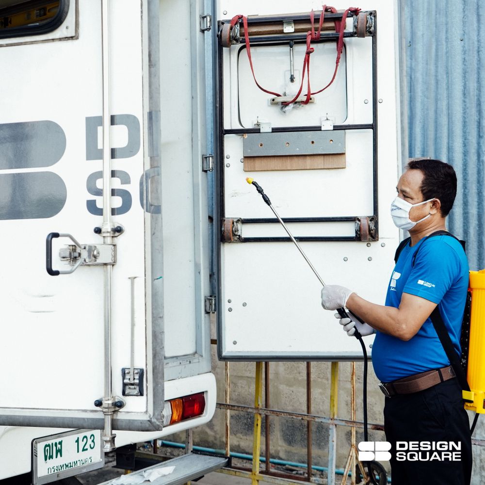 5.ฉีดพ่นน้ำยาฆ่าเชื้อโรค ภายในรถขนส่งสินค้า