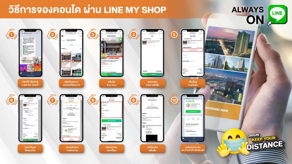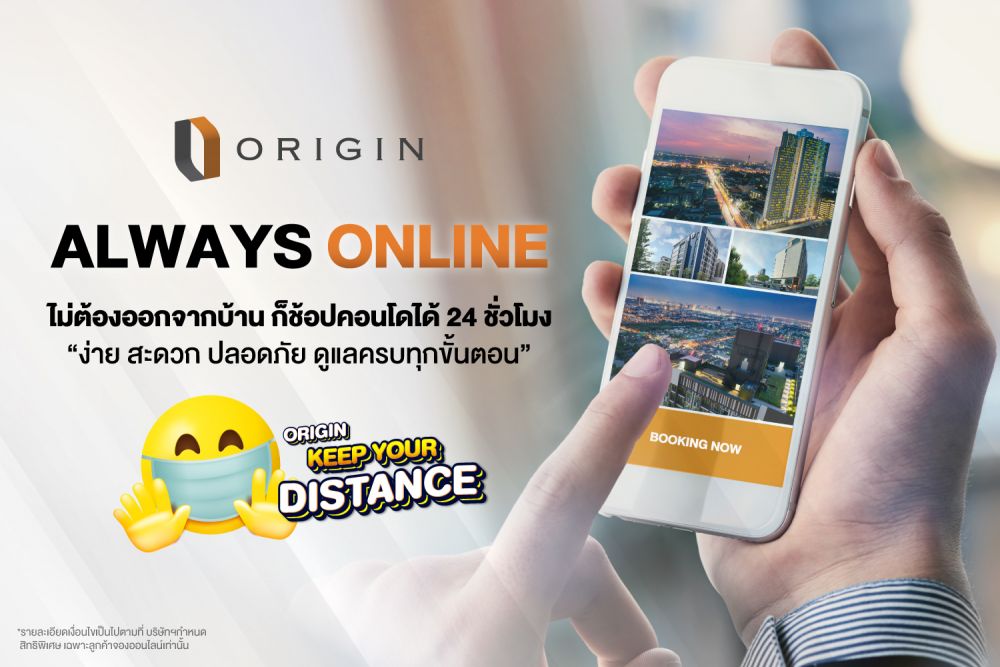 “ออริจิ้น พร็อพเพอร์ตี้” จัดแคมเปญ “Keep Your Distance” ให้ลูกค้าเว้นระยะผ่อนนานสูงสุด 3 ปี ฟรีค่าใช้จ่ายวันโอน เครื่องใช้ไฟฟ้าสูงสุด 5 รายการ ฟรีค่าส่วนกลางสูงสุด 3 ปี และดอกเบี้ยสุดพิเศษจากธนาคารพันธมิตร ราคาเริ่มต้น 1.59 ล้าน เปิดตัวกลยุทธ์ “Always Online” สร้าง Full Services of Online Journey ให้ลูกค้าทำธุรกรรมได้ครบวงจรผ่านช่องทางออนไลน์ ทั้งจอง-ทำสัญญา-ตรวจห้อง-โอนกรรมสิทธิ์ผ่าน LINE, Lazada, Shopee จองเบาๆ เพียง 1,999 บาท ถึง 30 มิ.ย.นี้
