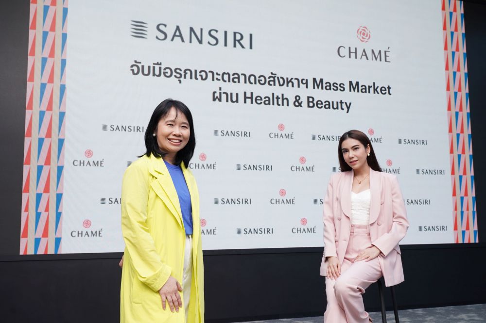 เขย่าวงการ 2 ขั้ว ! ผู้นำธุรกิจแถวหน้าของไทย “แสนสิริ” ผู้พัฒนาอสังหาริมทรัพย์ชั้นนำ ฉีกทุกกรอบการทำตลาดอสังหาฯ ประกาศพันธมิตรก้าวสำคัญผนึก “ชาเม่” (CHAME’) ผู้นำด้านสุขภาพและความงาม เตรียมสยายปีกรุกตลาดแมสทั่วประเทศ ลุยเจาะฐานลูกค้าใหม่พร้อมปั้นภาพแบรนด์ที่เข้าถึงง่ายและต่อยอดภาพผู้นำด้านการพัฒนาที่อยู่อาศัยที่ให้ความสำคัญกับ Well-Being ชูแนวคิด“Health & Beauty Solution” ตอบโจทย์ด้านสุขภาพและความงามครบวงจร เชื่อเข้าถึงกลุ่มเป้าหมายคนรุ่นใหม่ที่มีไลฟ์สไตล์รักสุขภาพได้ผ่านฐานการตลาดที่แข็งแกร่งของแบรนด์ชาเม่ ศักยภาพองค์กรและผลิตภัณฑ์คุณภาพในพอร์ตโฟลิโอ