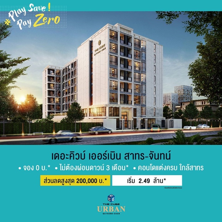 The Cube Urban Sathorn – Chan (เดอะคิวบ์ เออร์เบิน สาทร-จันทน์) คอนโดมิเนียมสไตล์อังกฤษที่เน้นดีไซน์การตกแต่งแบบโมเดิร์นบริทิช บนทำเลถนนสาทรเชื่อมต่อถนนจันทน์ ใกล้รถไฟฟ้า BTS สถานีสุรศักดิ์และสถานีสะพานตากสิน และรถไฟฟ้าสายสีเทา สถานีเจริญราษฎร์ (ในอนาคต) EIA Approved และอยู่ระหว่างดำเนินการก่อสร้าง ฟรี เงินจอง* ฟรี เงินดาวน์* นานถึง 3 เดือน ส่วนลดสูงสุด 200,000 บาท* ราคาเริ่มต้น 2.49 ล้านบาท* ( LINE @ >>> http://bit.ly/2YkL1XA )