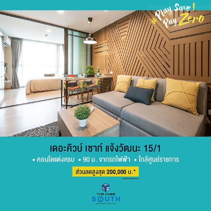 The Cube South Chaengwattana 15/1 (เดอะคิวบ์ เซาท์ แจ้งวัฒนะ 15/1) คอนโดมิเนียมสไตล์โมเดิร์นบูทีค พร้อมส่วนกลางลอยฟ้าบนชั้น 8 ทั้ง 4 อาคาร ทำเลถนนแจ้งวัฒนะ ซอย 15/1 ใกล้ศูนย์ราชการเฉลิมพระเกียรติ 80 พรรษา เพียง 90 เมตร ถึงรถไฟฟ้าสายสีชมพู สถานีแจ้งวัฒนะ 14 (เปิดบริการปี 2564) และรถไฟฟ้าสายสีแดงเข้ม สถานีหลักสี่ (เปิดบริการปี 2563) รับส่วนลดสูงสุด 200,000 บาท* ราคาเริ่มต้น 1.79 ล้านบาท* ( LINE @ >>> http://bit.ly/2JW6KMw )