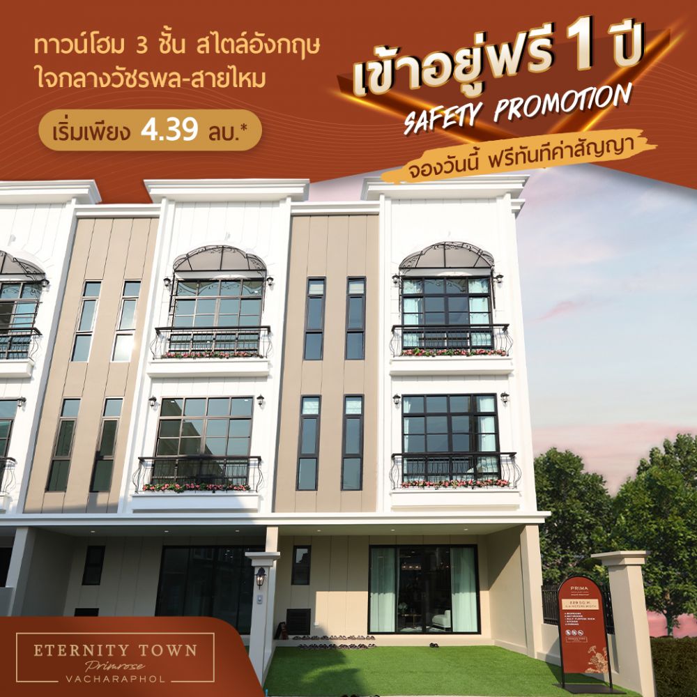 โดยลงทะเบียนวันนี้ รับสิทธิพิเศษต่าง ๆ มากมาย ไม่ว่าจะเป็น ฟรีค่าสัญญา* และสิทธิพิเศษในการอยู่อาศัยกันแบบฟรี ๆ 1 ปี* ตั้งแต่วันนี้ถึง 31 พฤษภาคมนี้ ผู้ที่สนใจสามารถลงทะเบียนเพื่อรับสิทธิพิเศษ ได้ที่ www.eternitytown.com หรือสอบถามรายละเอียดเพิ่มเติม โทร. 02-007-5555