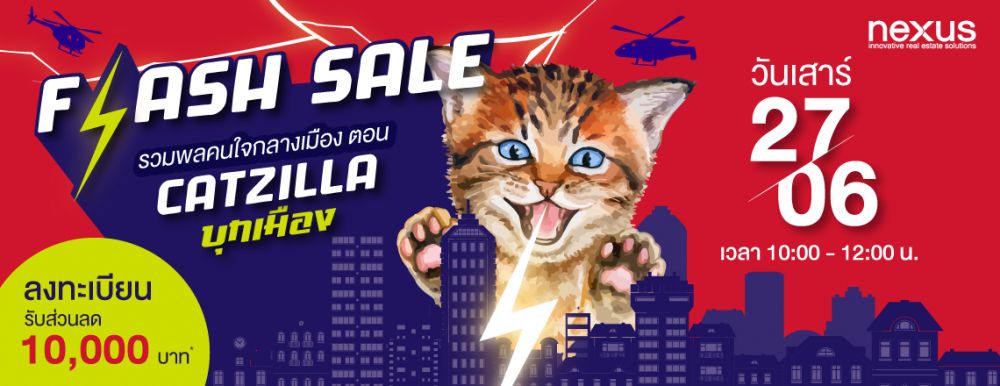 “รวมพลคนใจกลางเมือง” ตอน ‘Catzilla แมวบุกเมือง’ นับเป็น ซีรีย์ที่ 3 ของแคมเปญ “รวมพล” โดยในครั้งนี้ เน็กซัสนำคอนโดมิเนียมพร้อมอยู่ ทำเลใจกลางเมืองจากกว่า 40 ดีเวลลอปเปอร์ มาให้เลือกมากกว่า 1,000 ยูนิต อาทิ เช่น Triple Y Residence จาก Goldenland , Issara Collection Sathorn จาก กลุ่มชาญอิสสระ, Saladaeng One