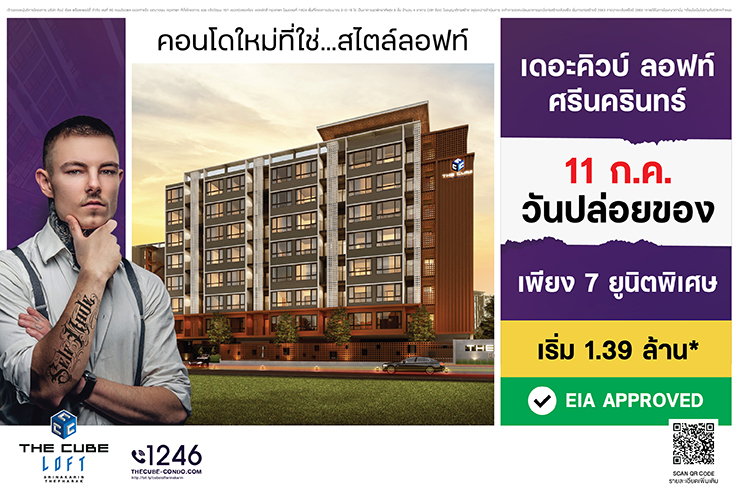นำคอนโดมิเนียมวิวสวยทำเลดีราคาพิเศษ 7 ยูนิต ราคาเริ่มต้นเพียง 1.39 ล้านบาท* พร้อมลุ้นรับ Gift Card Lotus มูลค่ารวม 20,000 บาท และเงื่อนไขพิเศษอื่น ๆ เฉพาะในงานเท่านั้น* พบกันวันเสาร์ที่ 11 กรกฎาคม 2563 ที่สำนักงานขาย The Cube Loft Srinakarin-Thepharak