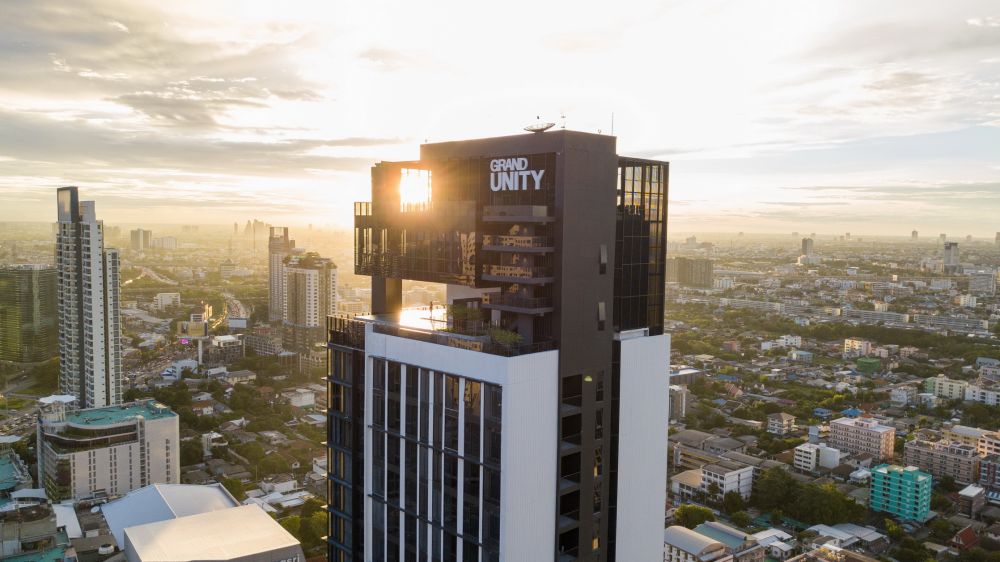 ในส่วนของการดีไซน์ มาพร้อมความพิถีพิถันในทุกองค์ประกอบและใส่ใจในทุกรายละเอียด เริ่มตั้งแต่ความสวยงามของตัวอาคาร ที่เน้นกระจกในการตกแต่งเพื่อความพรีเมียมและโดดเด่น ส่วนภายในห้องพักอาศัยยังคงรักษาความเป็นมาตรฐานของแกรนด์ ยูนิตี้ ผนวกกับการเลือกสรรวัสดุคุณภาพ ไม่ว่าจะเป็น Safety Glass หรือกระจกนิรภัย ทั้งโครงการและกระจกทุกบานในห้อง