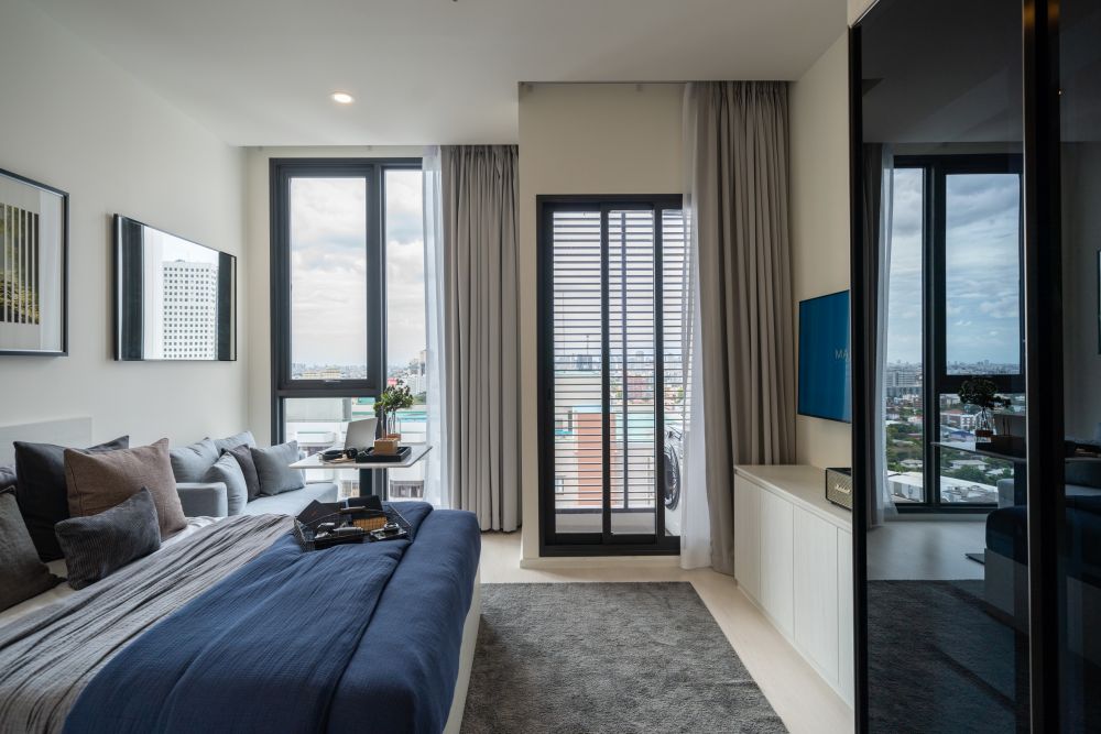 ด้วยห้องชุดเพดานสูง 3 เมตร พร้อมกระจกหน้ากว้างเต็มบาน ที่ทำให้มองเห็นวิวภายนอกได้กว้างยิ่งขึ้น ตู้เสื้อผ้า Built-in ขนาดใหญ่ให้ฟังก์ชันการใช้งานเสมือน Walk-in closet รองรับไลฟ์สไตล์ของผู้ที่ชื่นชอบการแต่งตัว ทำให้มีพื้นที่ในการจัดสรรเสื้อผ้าได้มากขึ้น Kitchen Island เคาเตอร์ครัววัสดุคุณภาพสำหรับผู้ที่รักในการทำอาหารที่มีมาให้ในห้องชุดพักอาศัยรูปแบบ 1 Bedroom Flexi