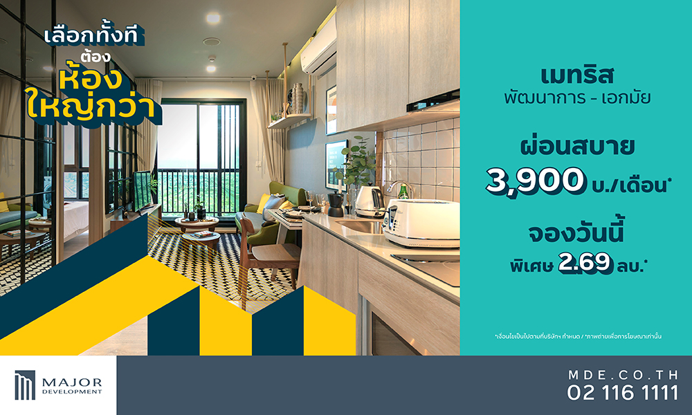 เมเจอร์ ดีเวลลอปเม้นท์ ชวนอยู่คอนโดเมทริส พิเศษแบบ “ขั้นกว่า”