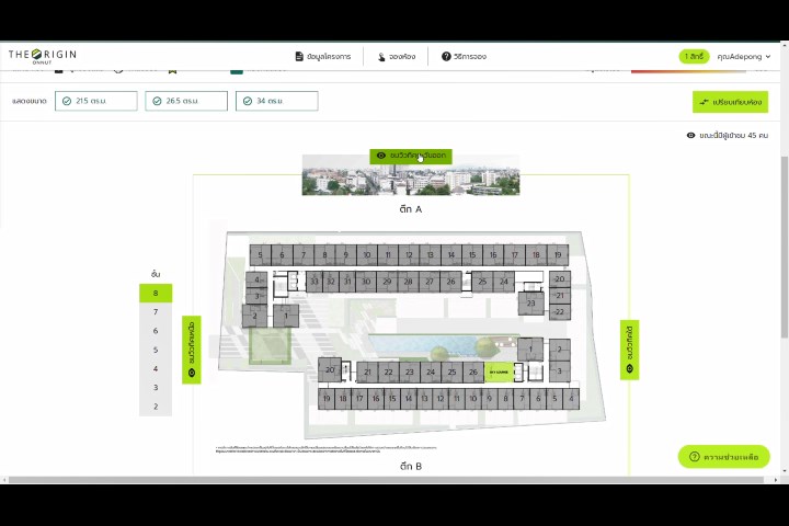 ที่ผ่านมา โครงการที่มีสำนักงานขาย มักจะมีห้องตัวอย่างให้ดู มีแบบห้องให้ดู บอกทิศบอกทาง แต่เราก็มักจะนึกไม่ออกอยู่ดี ว่าวิวทิศนั้นๆ ของห้องจะเป็นยังไง ออริจิ้นดูเหมือนจะรู้ Pain Point ตรงนี้ เลยออกแบบฟังก์ชันการเลือกห้อง