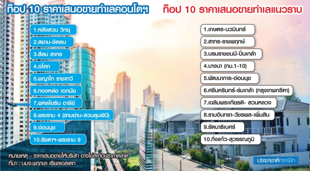 ส่วนที่ดินทำคอนโดฯแตกต่างออกไป เพราะมีอัตราการปรับขึ้นสูงกว่ามาก เช่น ทำเลอโศก เจ้าของที่ดินเคยเห็นราคาตารางวาละ 2 แสนบาท ปัจจุบันวาละ 2 ล้านบาท ทำให้ช่วงเศรษฐกิจไม่ดีก็ไม่มีความรีบร้อนขายออกมา ราคาที่ดินที่มีศักยภาพลงทุนคอนโดฯกลางเมืองจึงไม่ได้ปรับลง