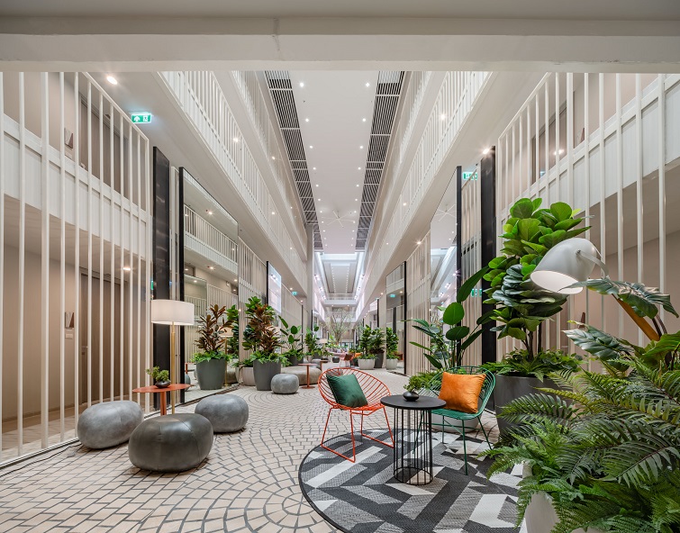 ครั้งแรกกับ The Sunshine Atrium โถงอาคารที่มี skylight ขนาดใหญ่เปิดรับแสงธรรมชาติ เสมือนยกเอาสวนภายนอกมาไว้ภายในอาคารซึ่งนับเป็นครั้งแรกที่แบรนด์ เดอะ เบส หยิบเอาโถงขนาดใหญ่พร้อมต้นไม้นานาพันธุ์มาไว้ในตัวอาคารเพื่อให้ตอบโจทย์ความผ่อนคลายอย่างแท้จริง