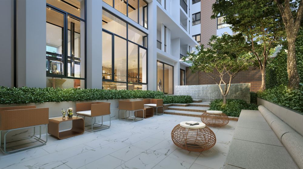 นอกจากนี้ยังมีโถงต้อนรับ Lobby ที่โอ่อ่า นั่งสบาย พร้อมมุมทำงานเฉพาะ หรือ co-working space เชื่อมต่อกับ Lobby Terrace ดีไซน์พิเศษสไตล์ Sunken Green Garden ล้อมรอบด้วยบ่อน้ำ และต้นไม้เขียว ให้ความร่มรื่น เป็นส่วนตัว