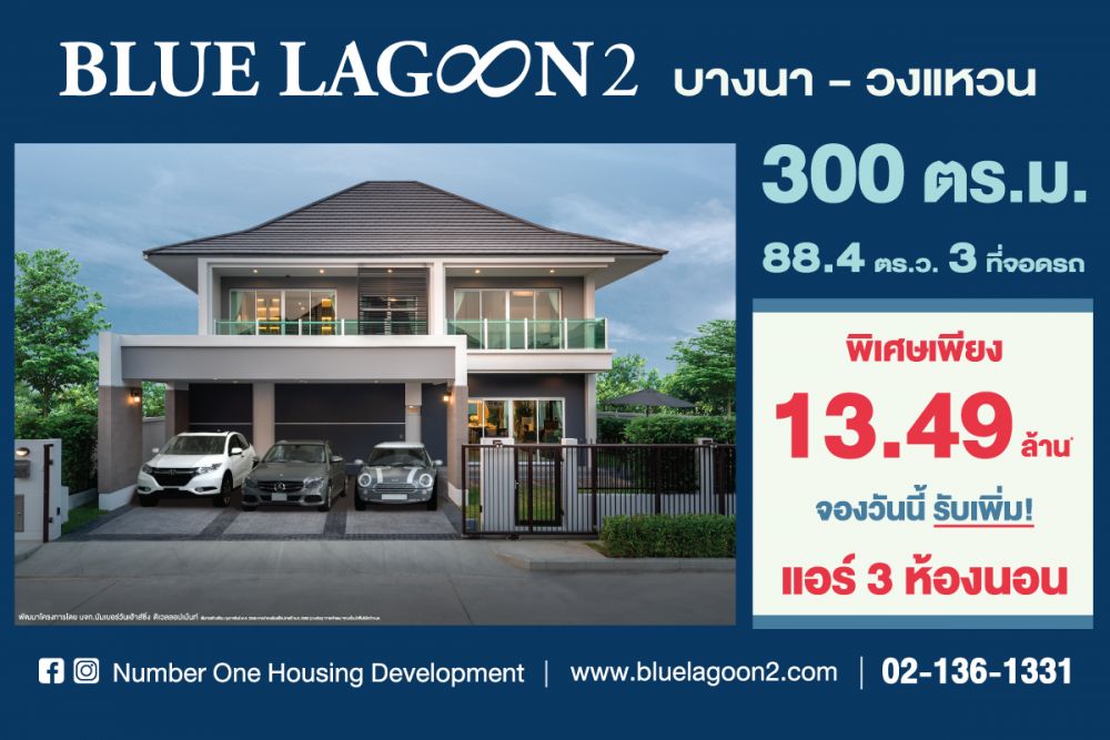 บลูลากูน 2 เปิดบ้านซีรีย์ใหม่ ใกล้สวน โดดเด่นด้วยฟังก์ชั่นการใช้งานที่ตอบโจทย์ทุกคนในครอบครัว ห้องนอนขนาดใหญ่ทุกห้องพร้อมห้องน้ำส่วนตัว ราคาพิเศษเพียง 13.49 ล้านบาทเท่านั้น!! บ้านใหม่ 300 ตร.ม. บนที่ดิน 88.4 ตร.ว. ถูกสุดในย่านบางนา พิเศษ!! จองวันนี้รับฟรีแอร์ 3 ห้องนอน