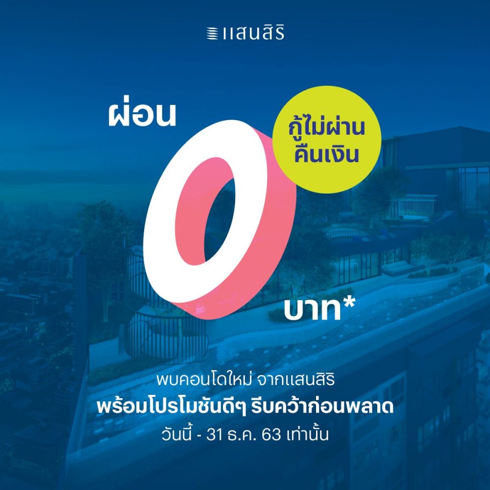 สำหรับใครที่สนใจเป็นเจ้าของคอนโดแสนสิริ พบกับโปรโมชั่น #ผ่อนไร้ดอก 9 คอนโดพร้อมอยู่จากแสนสิริ เริ่ม 2,999 บาท* นาน 24 เดือน* ให้คุณผ่อนไม่เสียดอกเบี้ย และรับเพิ่มสูงสุด 150,000 บาท* และอีกหนึ่งโปรโมชั่นสำหรับ 5 คอนโดใหม่จากแสนสิริ #ผ่อน 0 บาท กู้ไม่ผ่าน คืนเงิน* ตั้งแต่วันนี้ - 31 ธันวาคม 2563 นี้