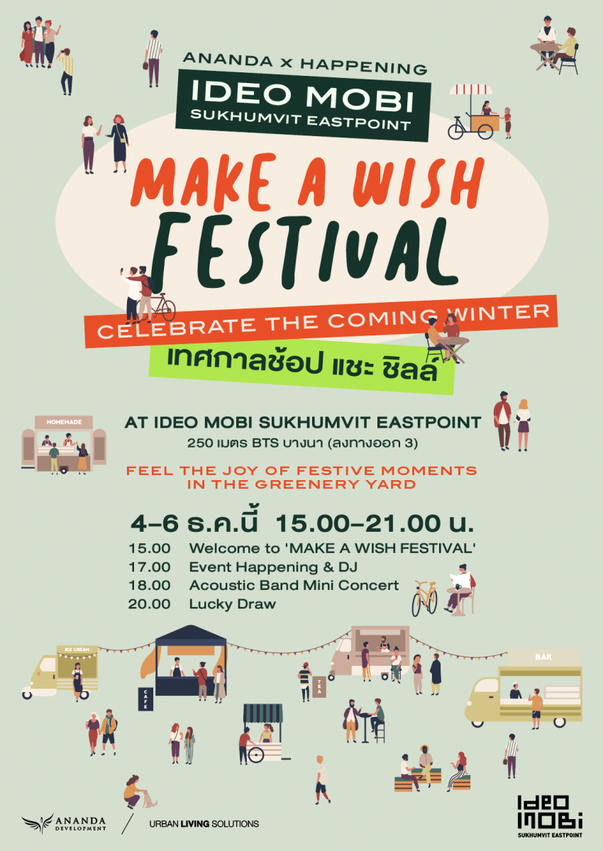 อนันดาฯ ร่วมกับ Happening ชวนคุณมาเทศกาลต้อนรับลมหนาว “Make a wish festival” มอบความสุขให้คนเมืองได้ตามฝัน ณ โครงการ Iconic แห่งใหม่ย่านบางนา ไอดีโอ โมบิ สุขุมวิทอีสต์พอยท์
