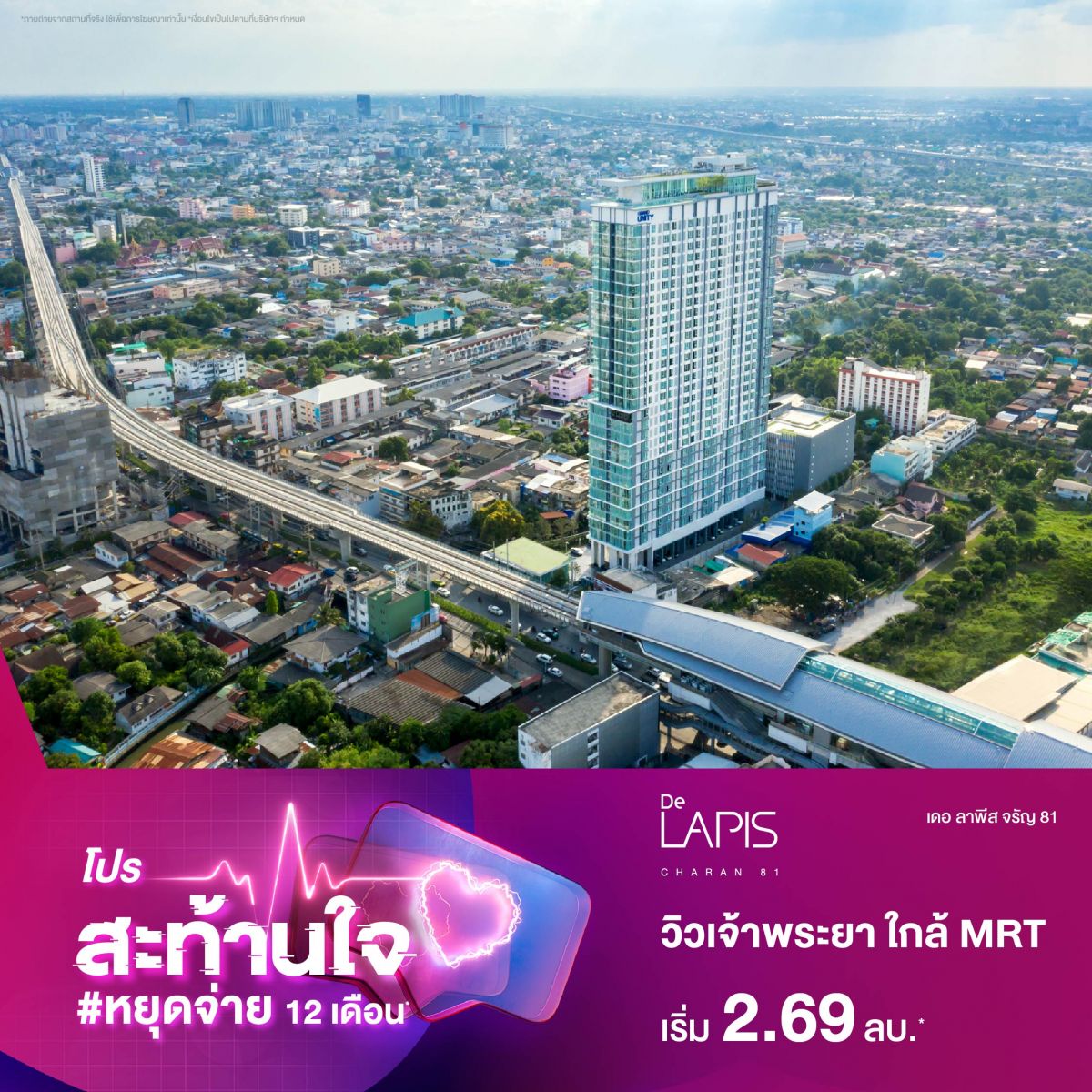 • เดอ ลาพีส จรัญ 81 วิวแม่น้ำเจ้าพระยา ใกล้ MRT บางพลัด เริ่ม 2.69 ลบ.* https://bit.ly/3hGhhfc