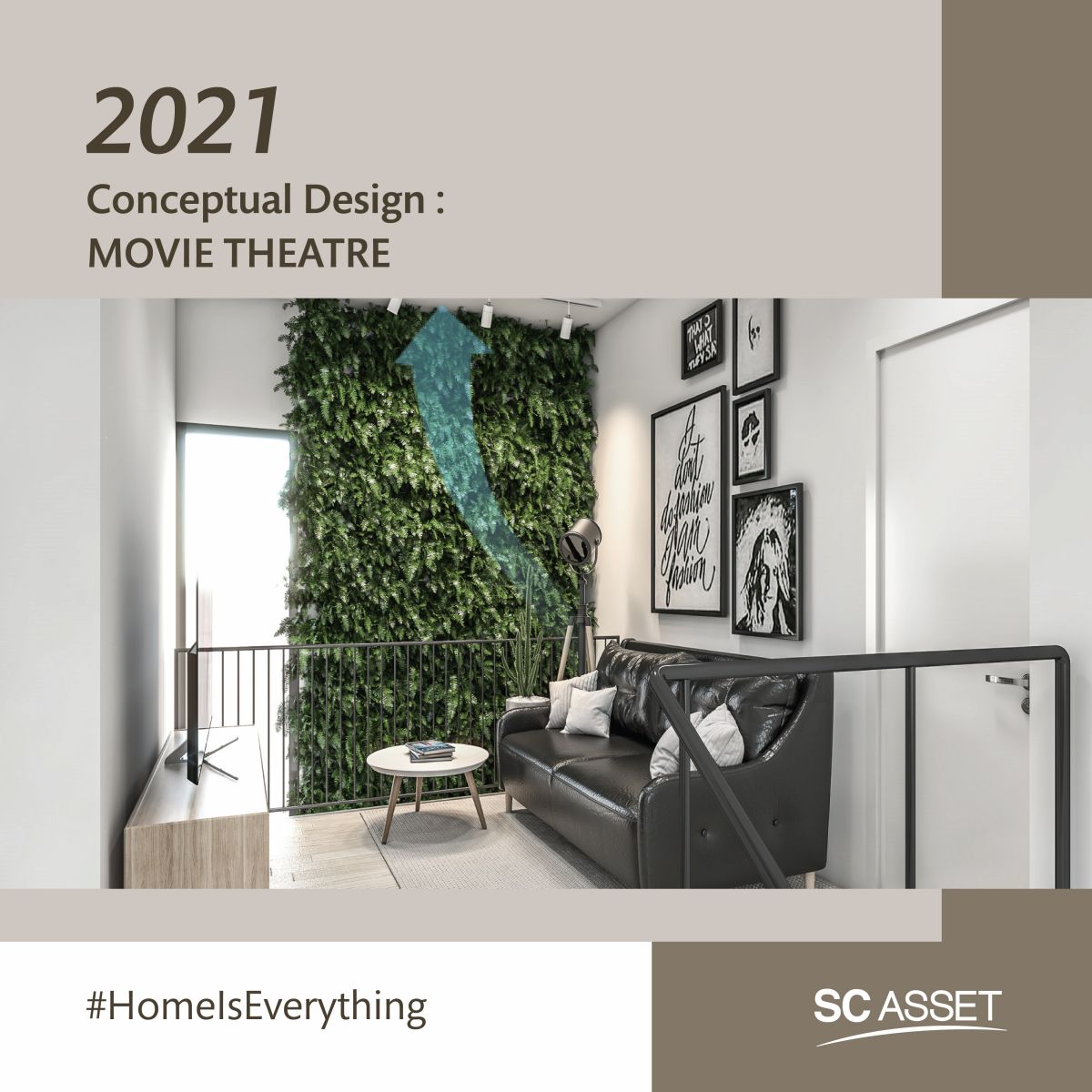 2. ฟังก์ชั่น Movie Theatre มุมที่สร้างบรรยากาศโรแมนติคไม่เหมือนใคร สำหรับผ่อนคลายจากการทำงานทั้งวัน นอกจากมีพื้นที่สีเขียวแบบ Vertical Garden ยังนั่งสามารถชมภาพยนตร์อย่างเพลิดเพลินภายในบ้านเสมือนอยู่ในโรงภาพยนตร์ ”