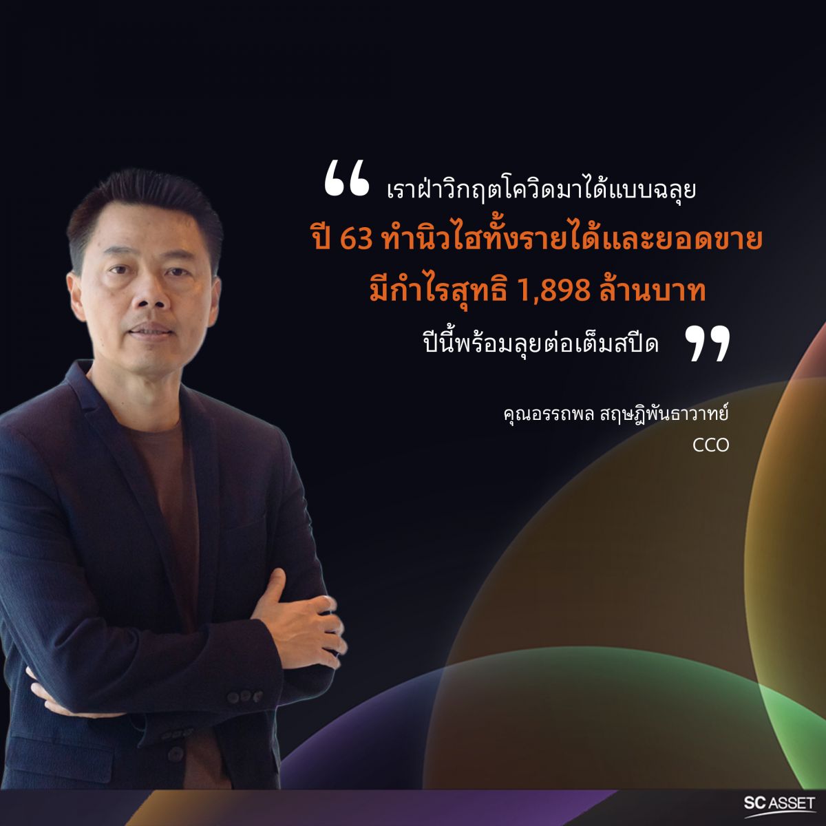 นายอรรถพล สฤษฎิพันธาวาทย์ ประธานเจ้าหน้าที่ด้านสนับสนุนองค์กร บริษัท เอสซี แอสเสท คอร์ปอเรชั่น จำกัด (มหาชน) หรือ SC ผู้พัฒนาสินค้าบริการคุณภาพมาตรฐานสูง ภายใต้มิชชั่น ‘สร้างเช้าที่ดีให้ลูกค้าทุกคน’ เปิดเผยถึงความสำเร็จของผลการดำเนินงานในปี 2563 ว่า “ SC สอบผ่านปีโควิดฉลุยด้วยกลยุทธ์เชิงรุกที่ปรับตัวอย่างรวดเร็วและยืดหยุ่น และการรักษามาตรฐานคุณภาพสินค้าและบริการ