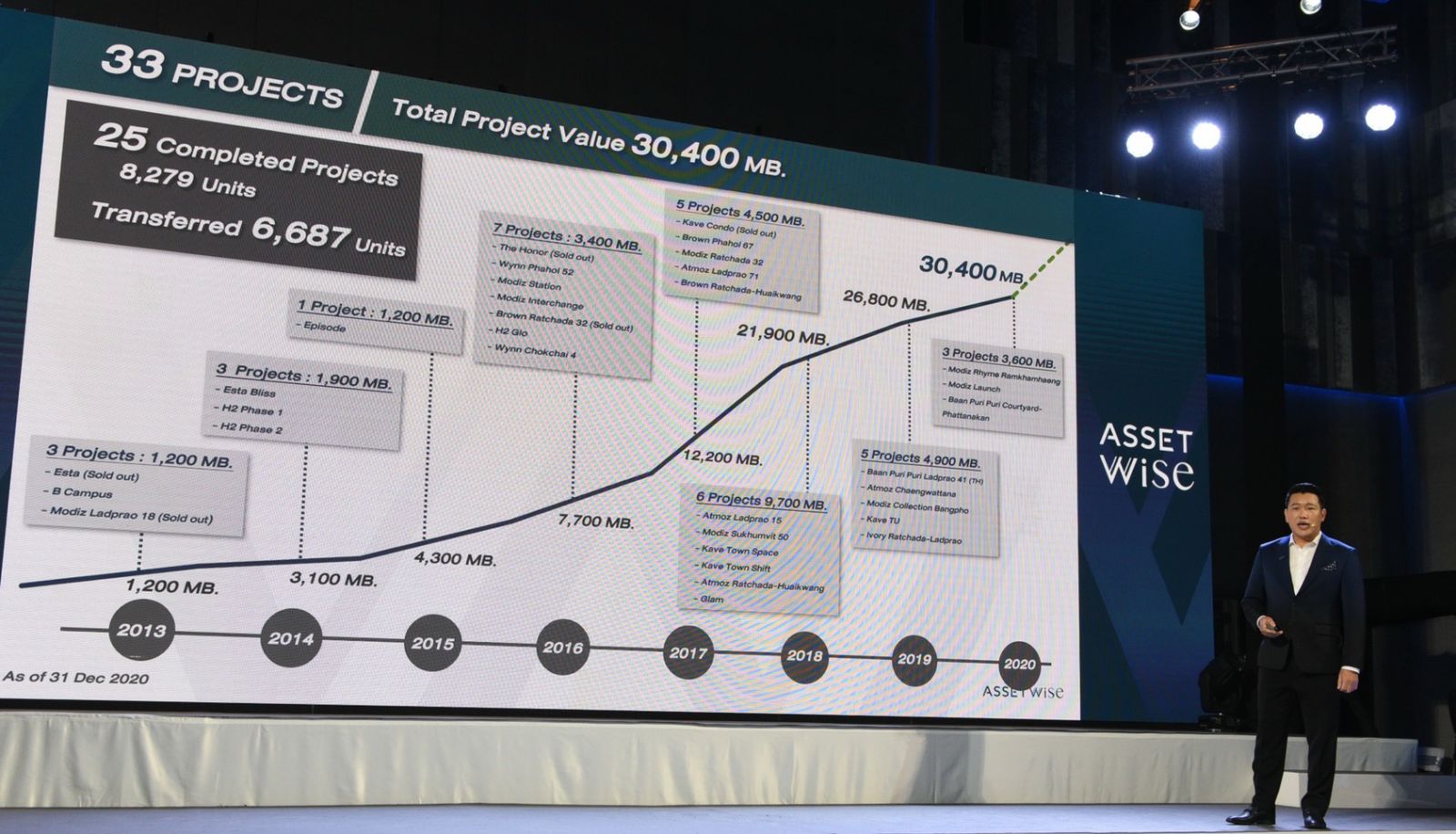 นายกรมเชษฐ์ วิพันธ์พงษ์ ประธานเจ้าหน้าที่บริหาร บริษัท แอสเซทไวส์ จำกัด (มหาชน) เปิดเผยว่า สำหรับปี 2563 ที่ผ่านมา ถือเป็นปีที่อสังหาริมทรัพย์เผชิญความท้าทายอย่างมาก แต่สำหรับแอสเซทไวส์นับเป็นอีกหนึ่งโอกาสสำคัญในการพัฒนาและเติบโต โดย ณ สิ้นปี 2563 บริษัทได้พัฒนาโครงการไปแล้วถึง 33 โครงการ มีมูลค่าโครงการรวมทั้งสิ้นกว่า 30,400 ล้านบาท ในปี 2563 เป็นปีที่แอสเซทไวส์ประสบความสำเร็จอย่างมากในการเปิดตัวโครงการ 3 โครงการ