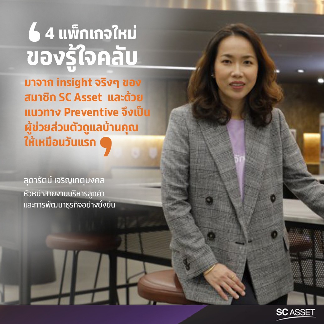 บริษัท เอสซี แอสเสท คอร์ปอเรชั่น จำกัด (มหาชน) ผู้นำ Living Solutions Provider โดยนางสาวสุดารัตน์ เจริญเกตุมงคล หัวหน้าสายงานบริหารลูกค้าและการพัฒนาธุรกิจอย่างยั่งยืน เปิดเผยถึงความยั่งยืนของแพลตฟอร์มของ ‘รู้ใจคลับ (RueJai Club)’ เพื่อสะท้อนถึงการส่งมอบสินค้าและบริการคุณภาพมาตรฐานสูงให้แก่ลูกบ้านในทุกระดับ ว่า