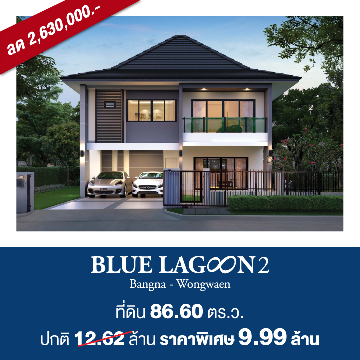 มาพร้อม 4 ห้องนอนขนาดใหญ่ Master Bedroom กว้างขวาง พร้อมห้องน้ำในตัวแบบ Walk-in Closet ที่จอดรถ 2 คัน จัดสวนสวยรับอากาศบริสุทธิ์ทุกวัน อีกทั้งภายในโครงการบลูลากูน 2 มีคลับเฮ้าส์หรูและสระว่ายน้ำพร้อมสวน Infinity Park ขนาดใหญ่ 7 ไร่ให้ความร่มรื่นเสมือนเป็นแหล่งโอโซนสำคัญสำหรับทุกคนในครอบครัว ลงทะเบียนรับสิทธิ์ที่ https://www.bluelagoon2.com/ หรือสอบถามรายละเอียดเพิ่มเติมโทร 02-136-1331